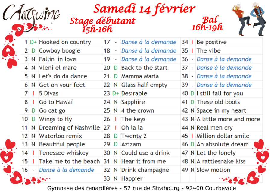Stage débutant (bal inclus) : Adhérents 8€, Extérieurs 10€